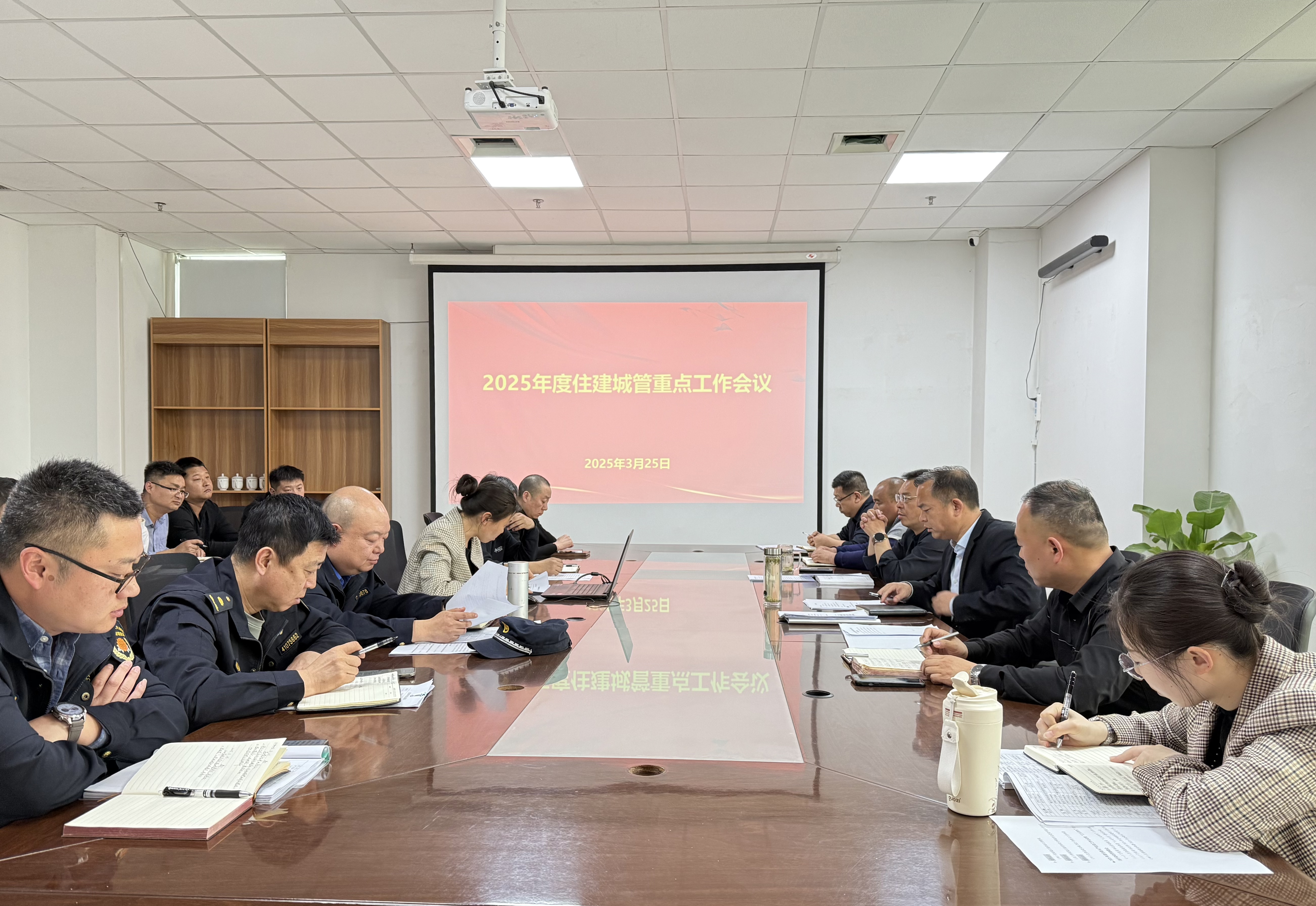 3月25日下午,县住建城管局召开2025年度重点工作动员部署会,明确全年重点工作任务,谋好篇、开好局,奋力夺取第一季度“开门红”、全年工作“满堂彩”。会议由局党组副书记丁先宾主持,全体科级干部、中层正职及二级机构负责人参会。