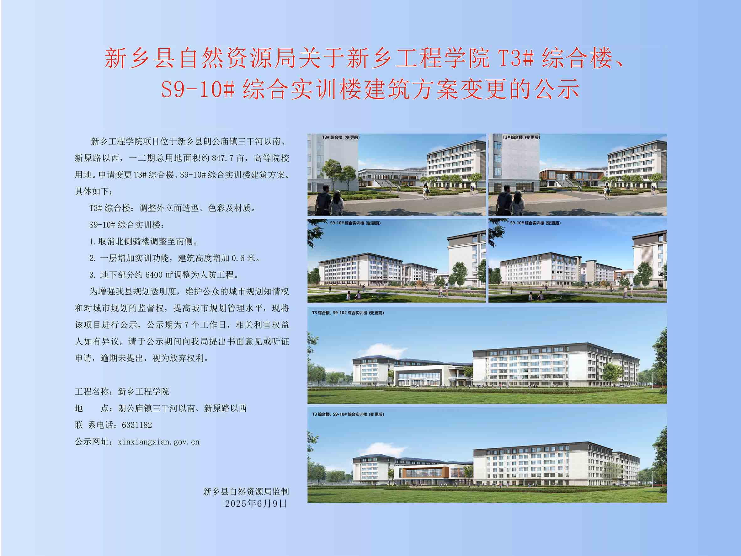 新乡工程学院T3#综合楼、S9-10#综合实训楼建筑方案变更公示