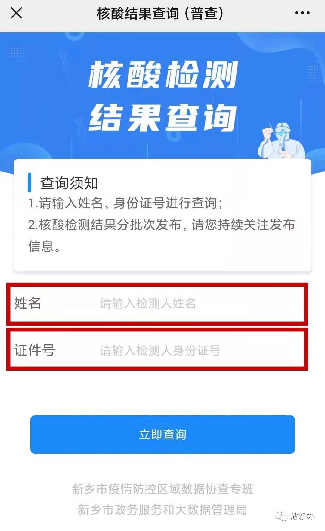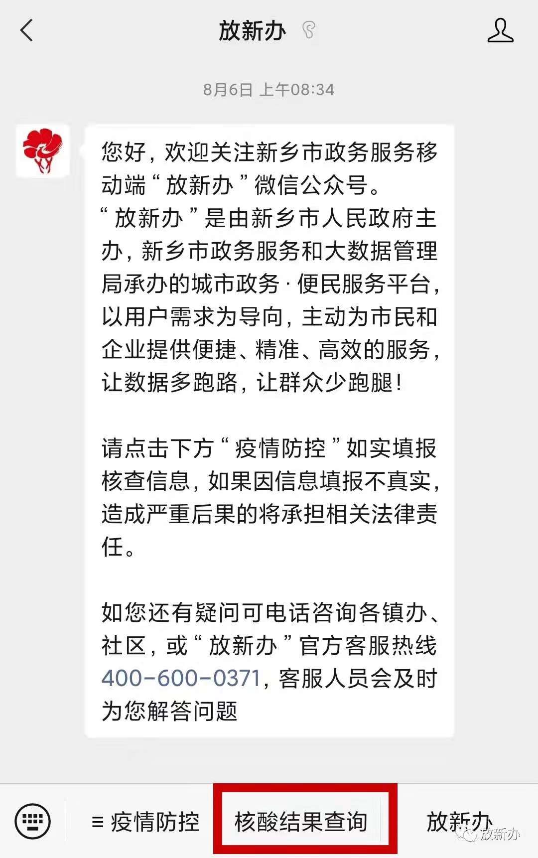 方法一:关注新乡政务服务平台“放新办”公众号点击底部“核酸结果查询”菜单,输入姓名和身份证号进行查询。