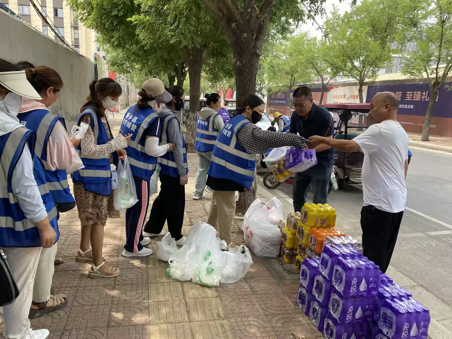 数字城管综合服务中心负责人为采集员发放毛巾、饮料、矿泉水、白糖等防暑降温用品,叮嘱一线人员在做好本职工作的同时,做好高温防护,保障自身安全。同时,合理安排工作时间,避开高温时段户外采集。