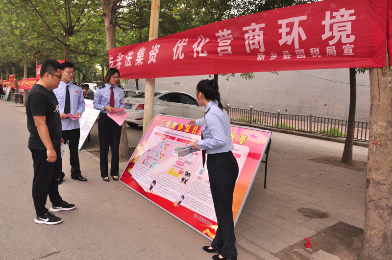 活动现场,县国税局将防范非法集资与税法宣传相结合,通过摆放宣传展板,发放范非法集资宣传页及增值税改革、新办企业涉税业务提醒、创业优惠政策等税收宣传资料,现场解答群众疑问,呼吁广大群众自觉远离非法集资。此次活动,在宣传税法的同时,进一步提高了社会公众对非法集资的识别能力和风险防范意识,引导社会大众理性投资。