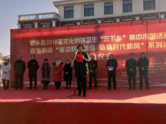 2018年1月10日上午10时,在新乡县古固寨祥和社区文化广场,新乡县2018年文化科技卫生“三下乡”集中示范活动暨春节期间“推动移风易俗,弘扬时代新风”系列活动正式启动。在启动仪式上,新乡县司法局借助这一平台,进一步推动“法律六进”,大力促进法治文化建设,将法律送到乡村,送进社区,送到农民手中。