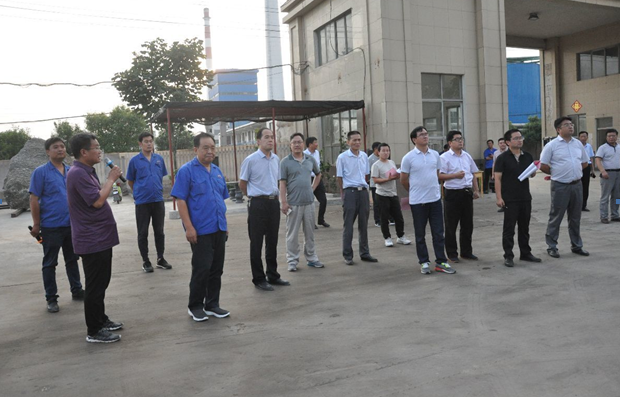 市观摩组第一站来到新亚纸业,徐县长向观摩组介绍新亚液包纸项目。