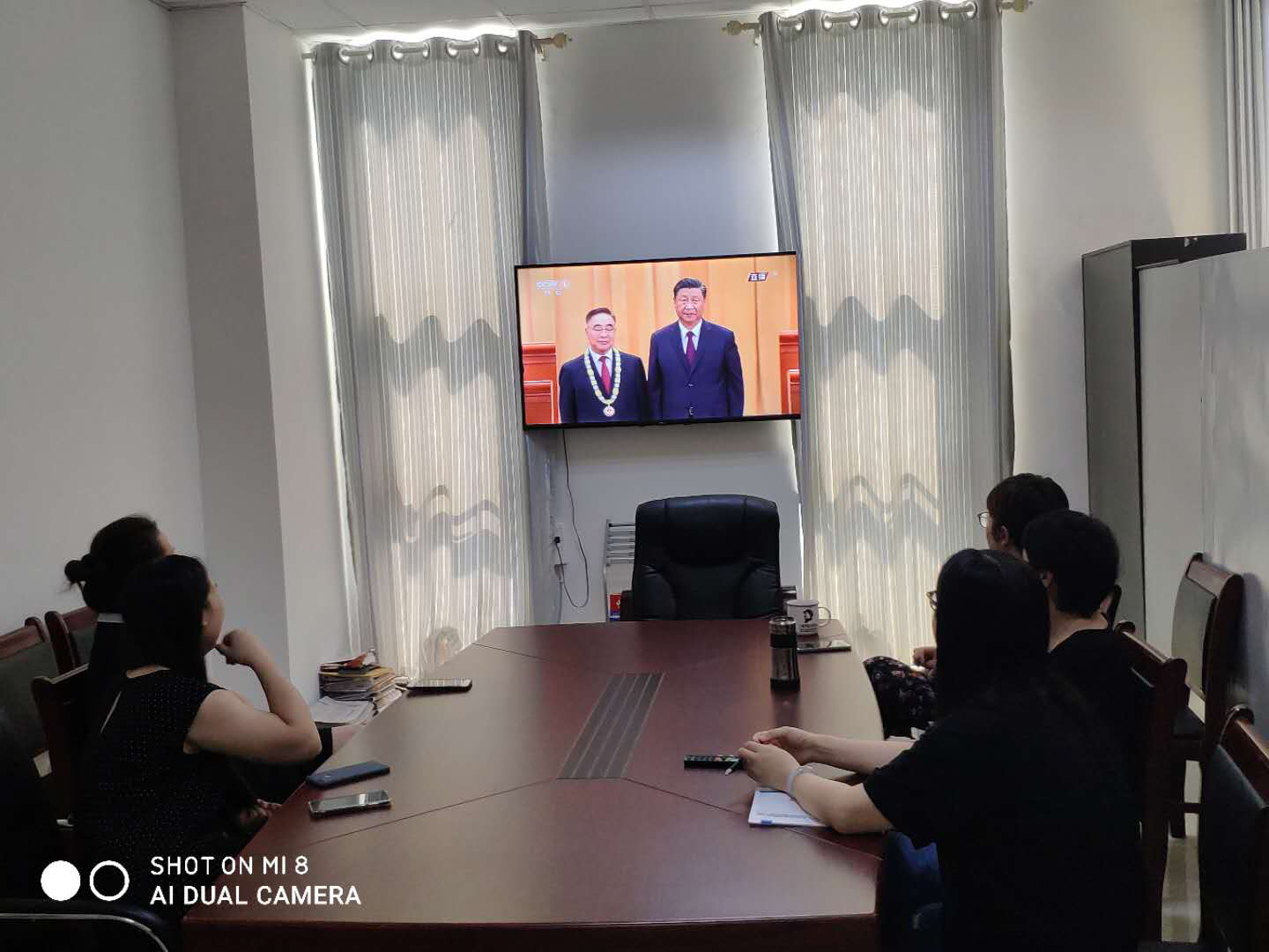 全国抗击新冠肺炎疫情表彰大会8日上午在北京人民大会堂隆重举行。中共中央总书记、国家主席、中央军委主席习近平向国家勋章和国家荣誉称号获得者颁授勋章奖章并发表重要讲话。县史志办组织全体干部职工集中收听收看了这次表彰大会的实况。