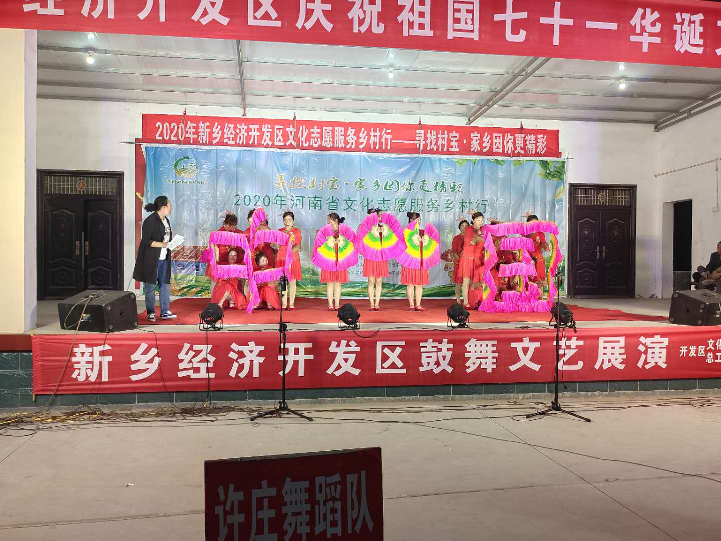 活动邀请新乡县爱乐军乐团前来演出,演奏《东方红》、《歌唱祖国》、《没有共产党就没有新中国》,歌曲《祖国你好》、《家和万事兴》,腰鼓《开门红》、《中国范儿》,舞蹈《中国美》、《祝福祖国》、《山谷里的思念》、《最美的中国》、《天纵横》等,另有河南省曲剧团领衔主演,河南电视台梨园春栏目十年擂主争霸金奖霸主李春景女士、著名曲剧艺术家海连池大师亲传弟子王二星前来助阵。