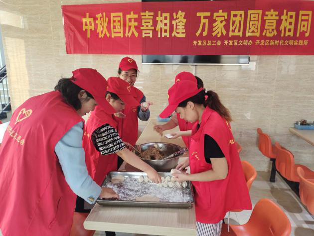 为丰富干部职工节日文化生活,更好地激发大家的工作热情,在中秋、国庆双节来临之际,9月30日上午,新乡经济开发区总工会、区文明办、区新时代文明实践所开展“迎国庆·庆中秋”包饺子活动。