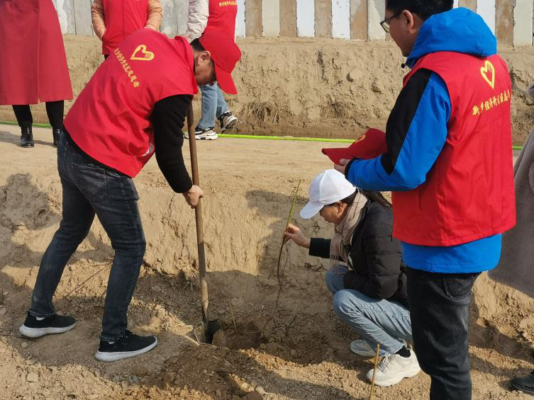 一年之计在于春,植树添绿正当时。2月18日下午3时,在杨屯村活动现场一派热火朝天的劳动景象,大家热情高涨,纷纷拿起铁锹,挖坑植苗、铲土入坑、培实新土、灌溉浇水,大家分工明确,齐心协力,撸起袖子加油干,挥舞铁锹翻新土,扶植新苗列成行,一排排新栽种的桃树苗“安家落户”,整齐有致,迎风挺立,为初春平添了丝丝活力,在阳光下显示出勃勃生机。本次活动共栽植经济桃木200余株,高标准完成了栽植任务。
