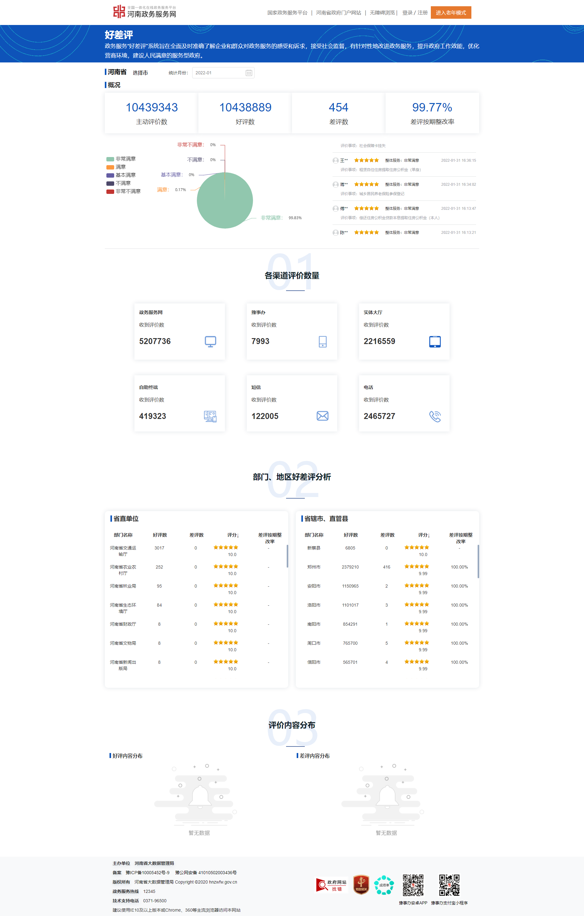 2022年1月 新乡县好差评概况 10439343主动评价数 10438889好评数 454差评数 99.77%差评按期整改率