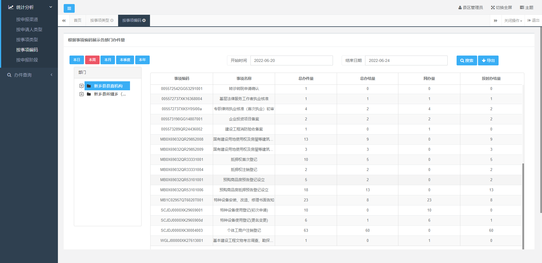 2022年6.20-2022.6.24新乡县政务事项一周办件统计