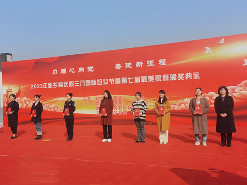 3月2日上午,县妇联、总工会、文明办、团县委在凤鸣湖广场举办“巾帼心向党 奋进新征程”2023年新乡县庆祝三八国际妇女节暨第七届最美家庭颁奖典礼,对受到表彰的“三八红旗集体”“三八红旗手”“巾帼文明岗”“最美家庭”代表进行颁奖,朗公庙镇财政所和信息中心朱祥钰光荣上榜!