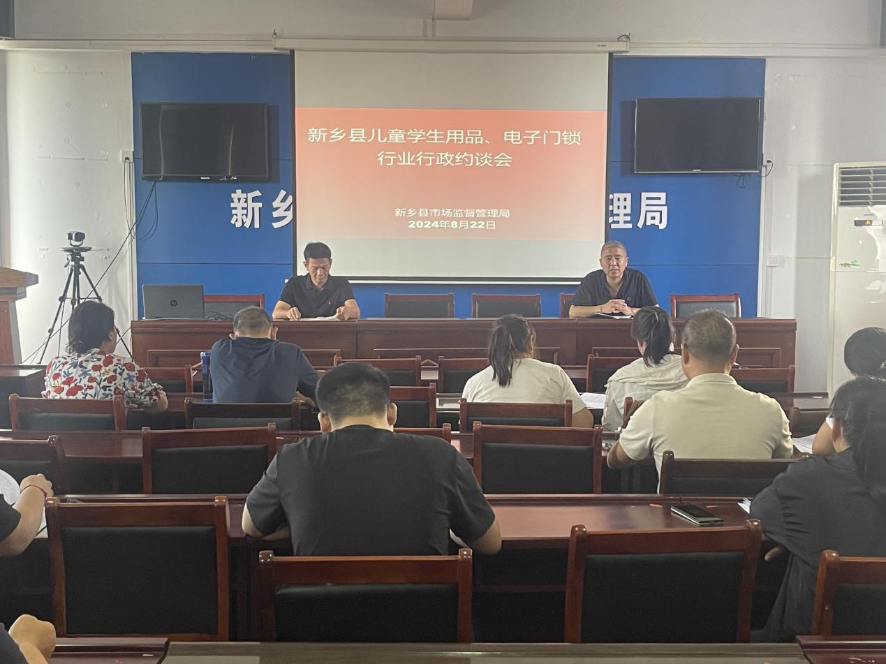 为进一步提高销售单位质量主体意识和法律意识,保障销售产品质量安全。8月22日,市市场监管局组织召开儿童学生用品和电子门锁销售单位约谈培训暨主体责任落实推进视频会,新乡县辖区13家销售单位参加会议。