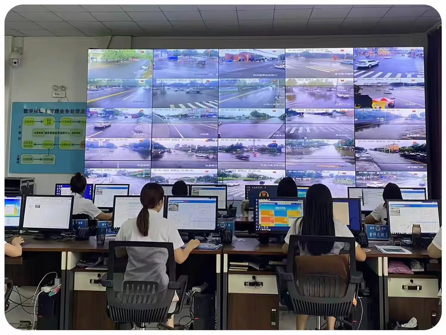 数字城管坐席员实行24小时值班制度,利用数字城管视频监控系统,发挥“智慧眼”作用,对城区重点路段、低洼区域等点位进行全天候实时动态监控,发现隐患或险情及时上报,并运用数字城管平台第一时间与相关单位加强沟通,做好防汛应急抢险工作;12319城建服务热线保持畅通,对因暴雨造成的安全隐患类问题,及时派发至各责任单位,力求用最短的时间解决群众难题。