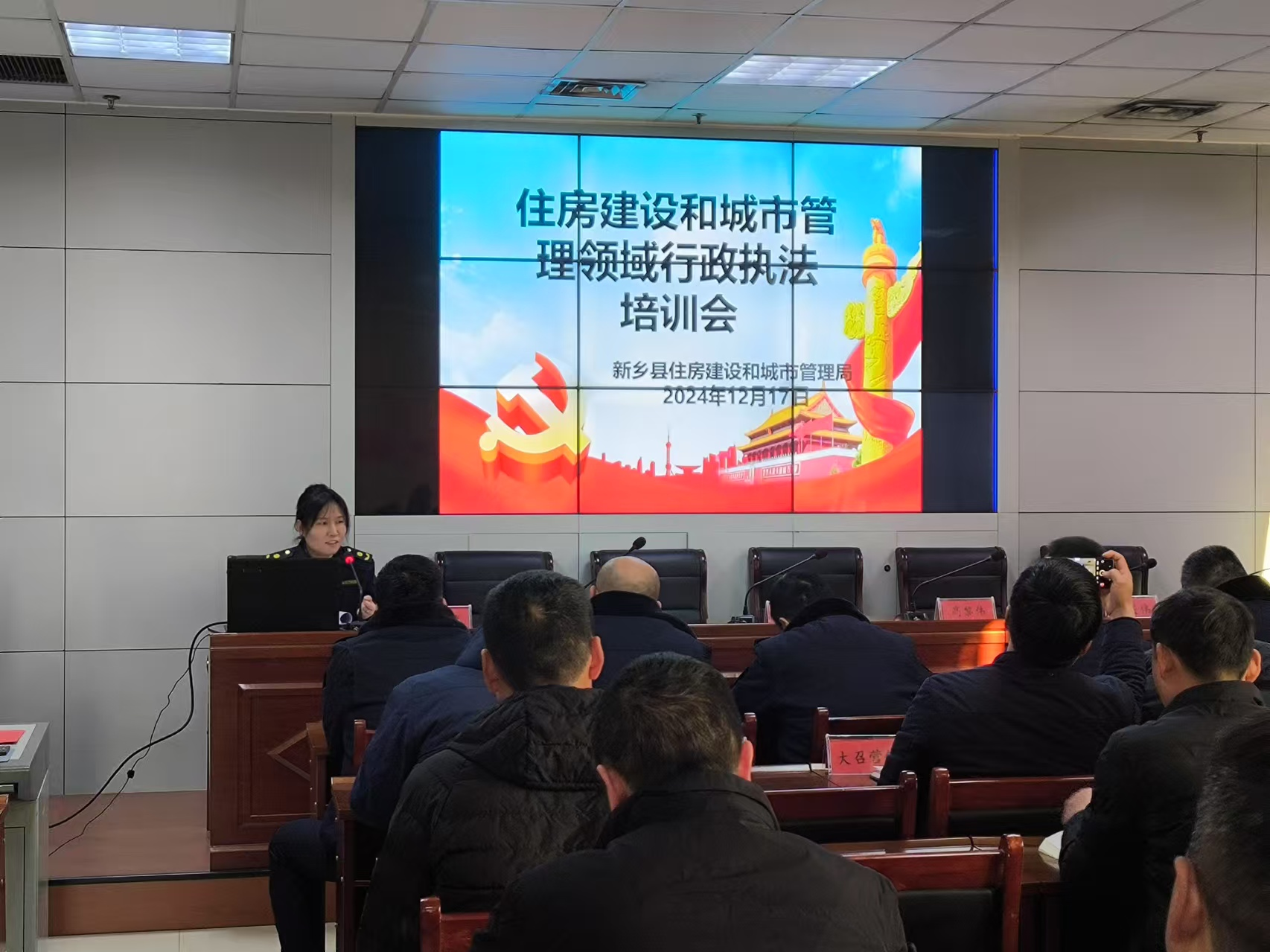 为深入贯彻落实省、市、县关于乡镇(街道)综合行政执法改革要求,整合执法资源,提升执法效能,深入推进执法规范化建设,12月17日,县住建城管局组织召开住房建设和城市管理领域业务培训会,县综合行政执法大队全体人员、各乡镇执法骨干共计60余人参加培训会议。