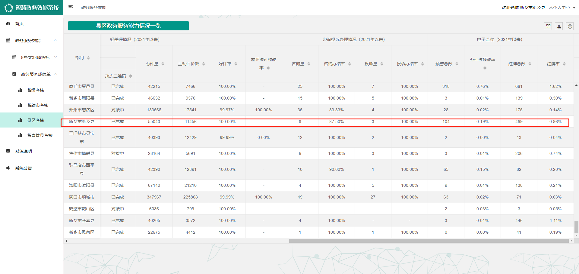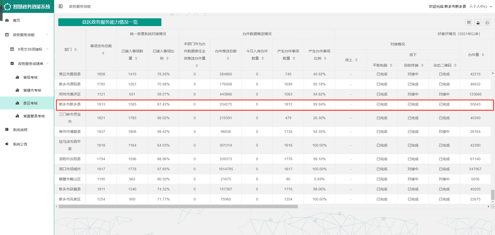 新乡县政务服务成绩单排名