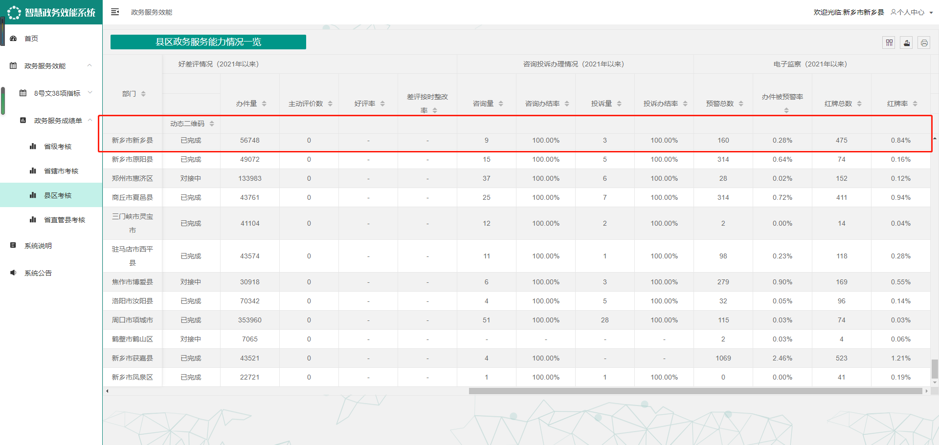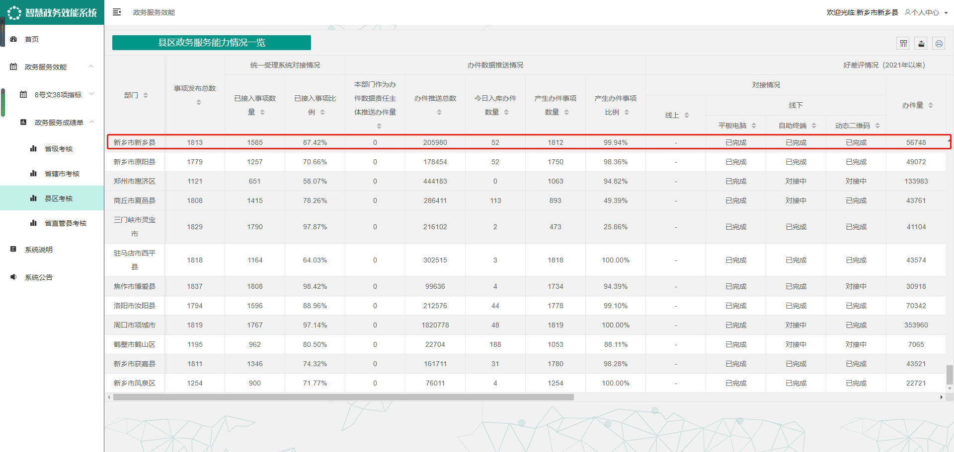 新乡县政务服务成绩单排名