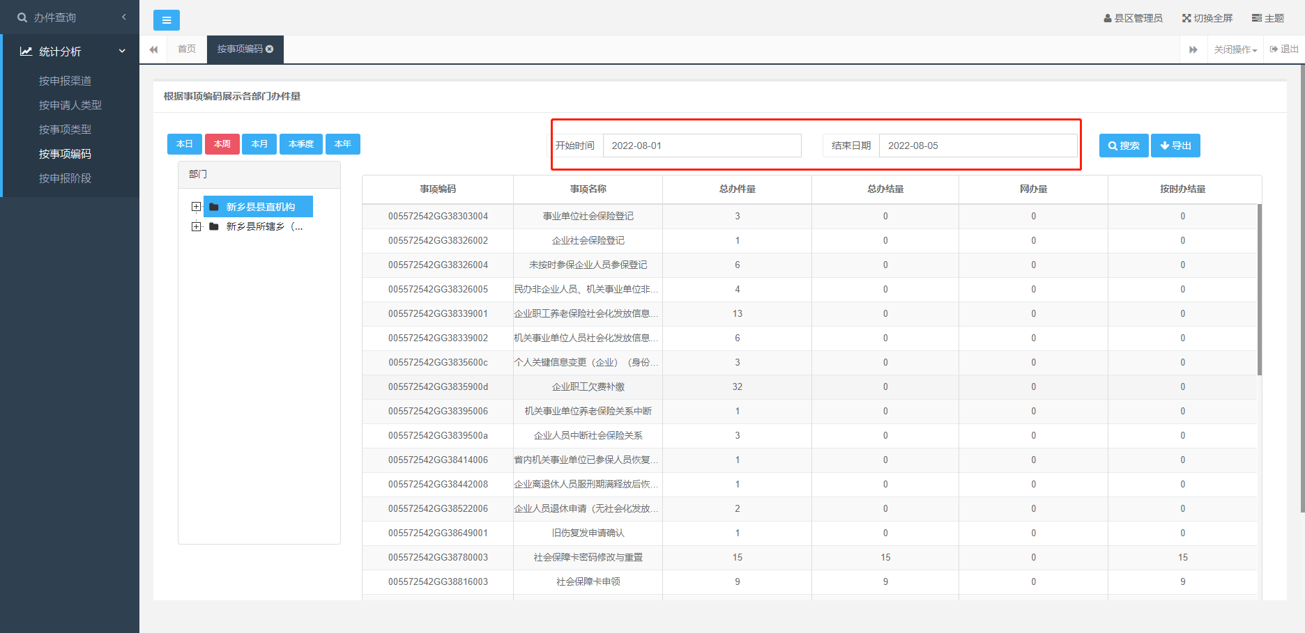2022年8.1-2022.8.5新乡县政务事项一周办件统计
