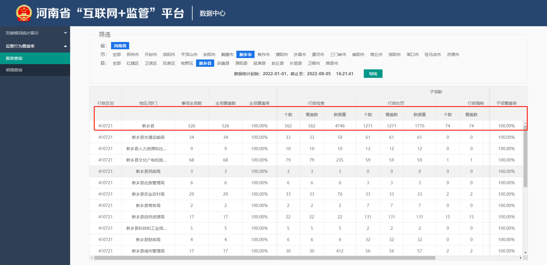2022年8.1-2022.8.5新乡县政务事项一周办件统计
