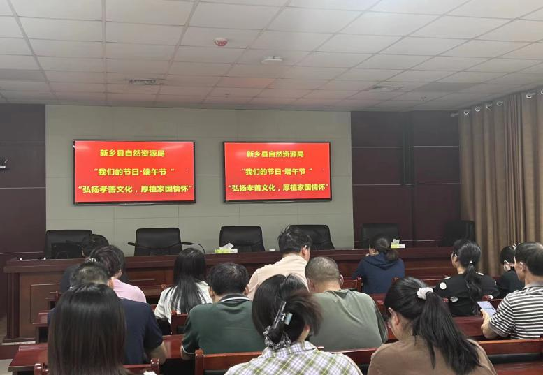 6月7日下午,为大力弘扬端午节蕴含的爱国爱民、坚贞不屈、奋斗不息、上下求索、团结奋斗等厚重而多样的优秀传统文化,新乡县自然资源局组织召开“我们的节日·端午”主题活动,全局党员干部参加活动。