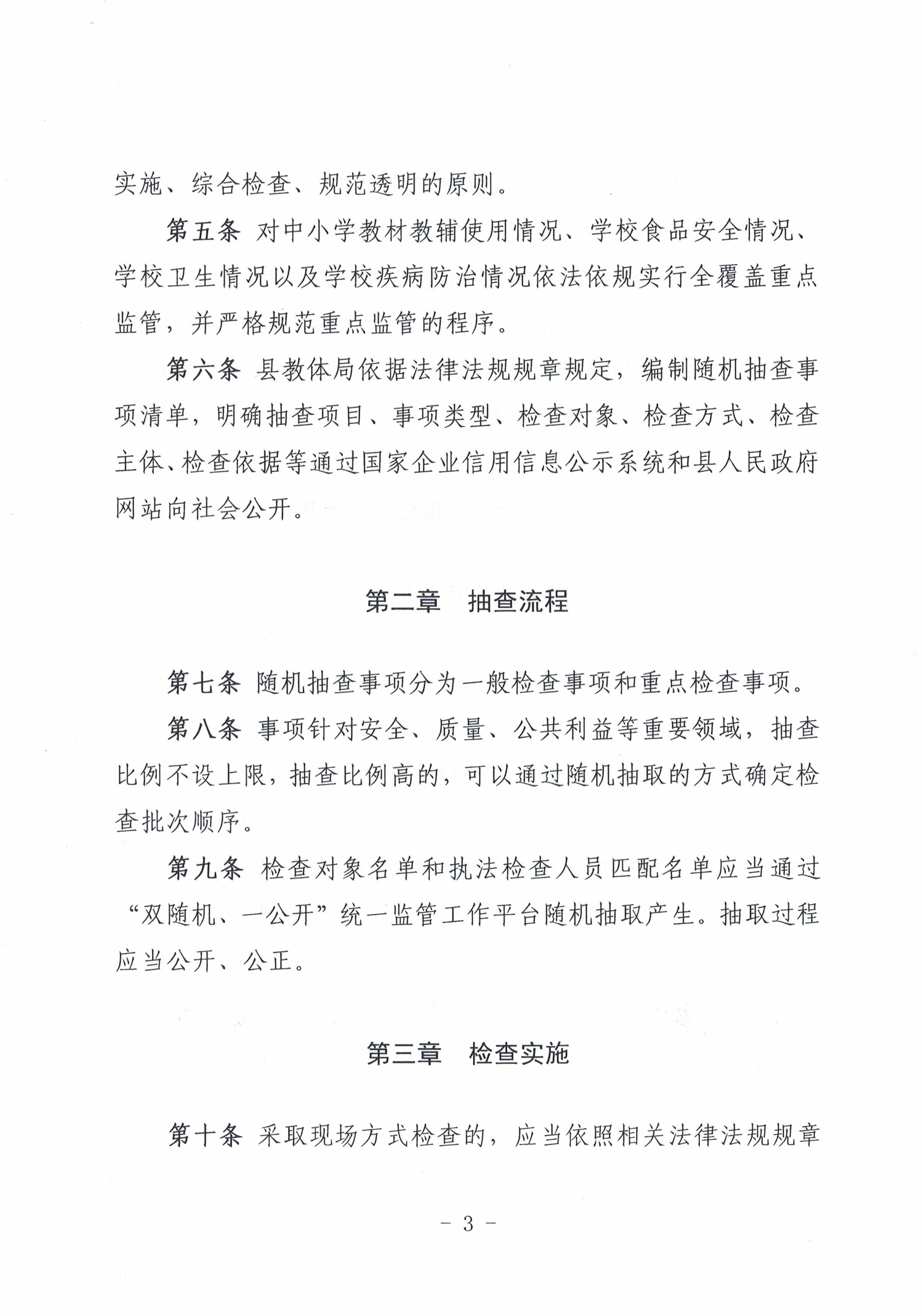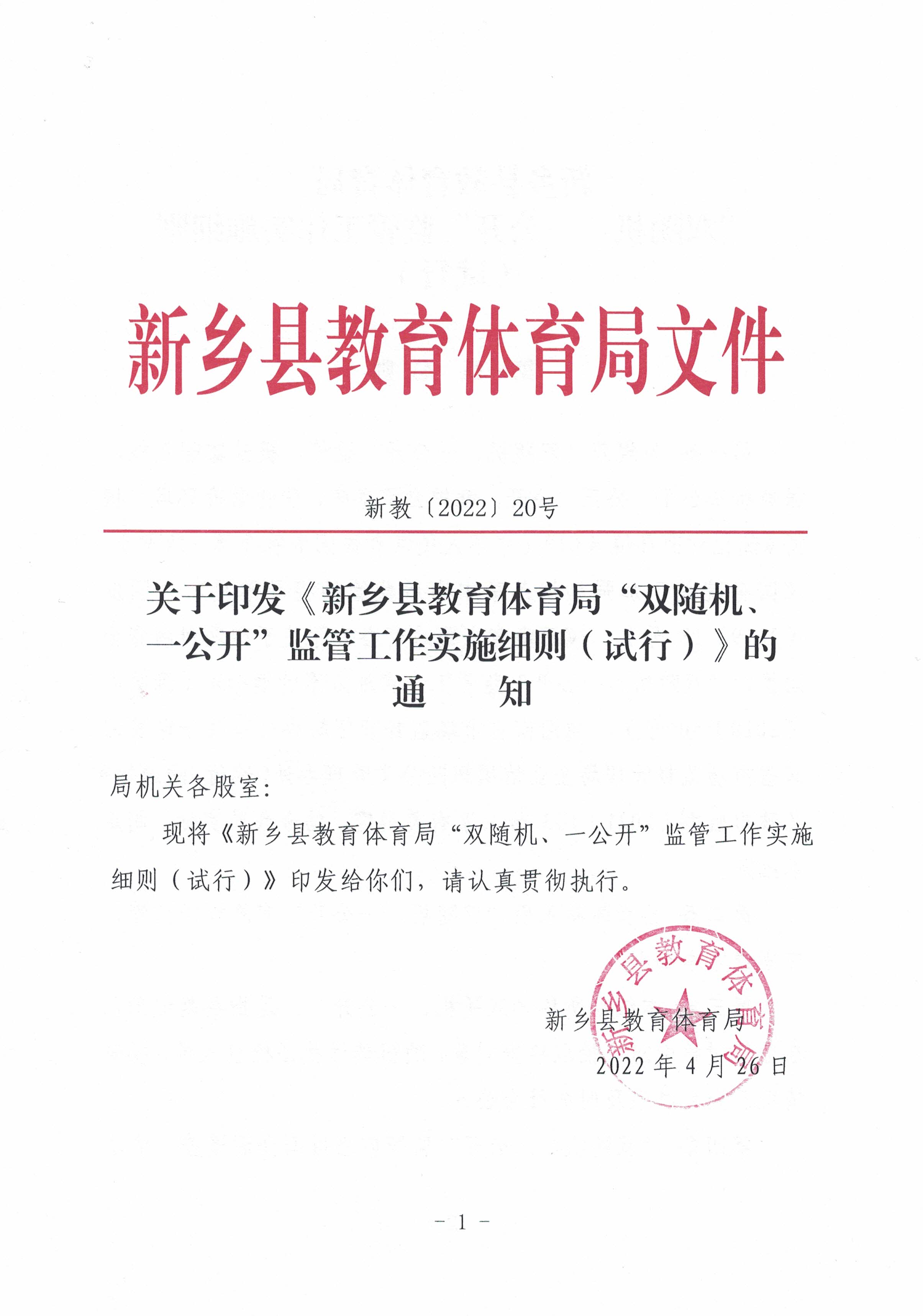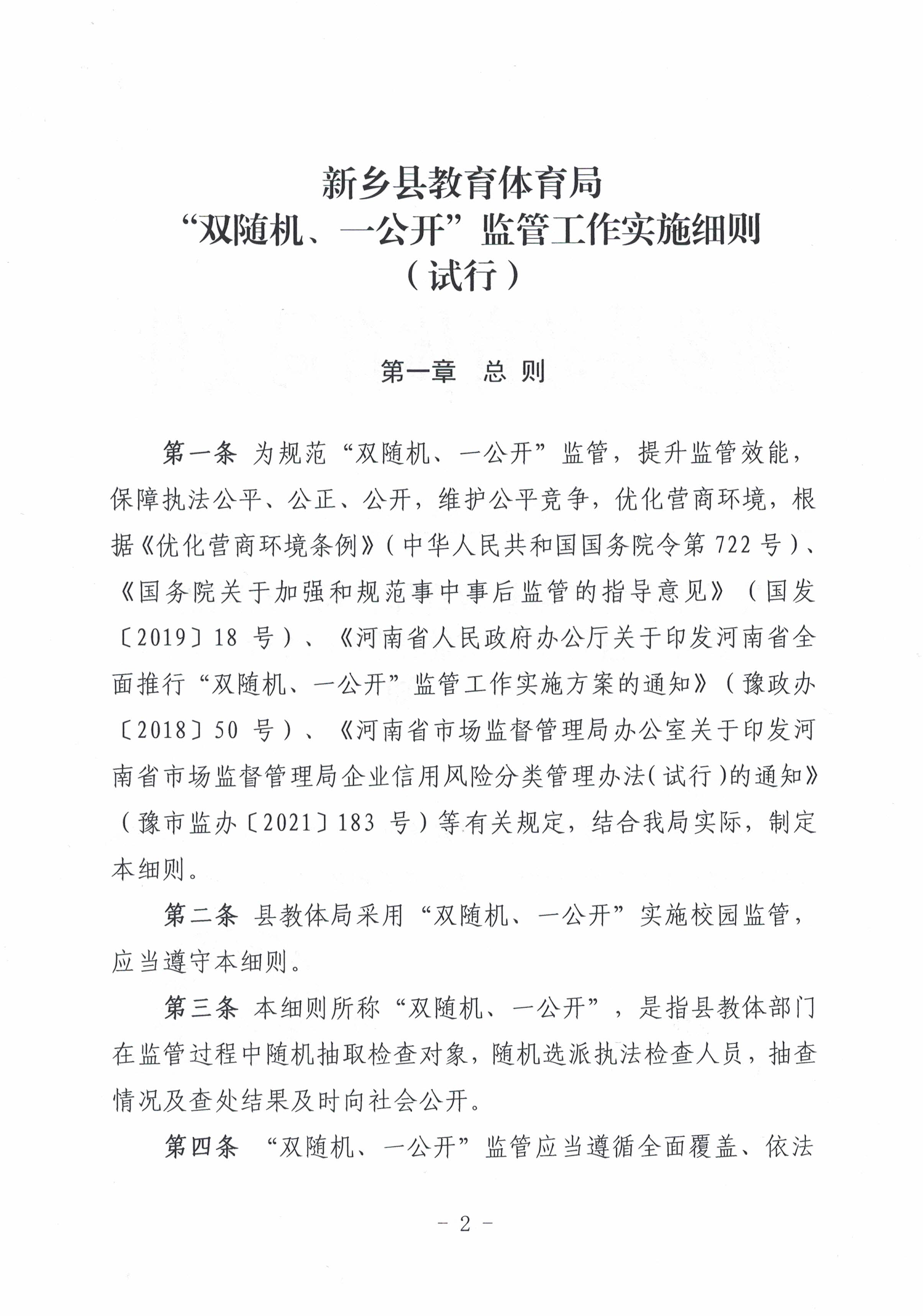 新乡县教育体育局 “双随机、一公开”监管工作实施细则 (试行)